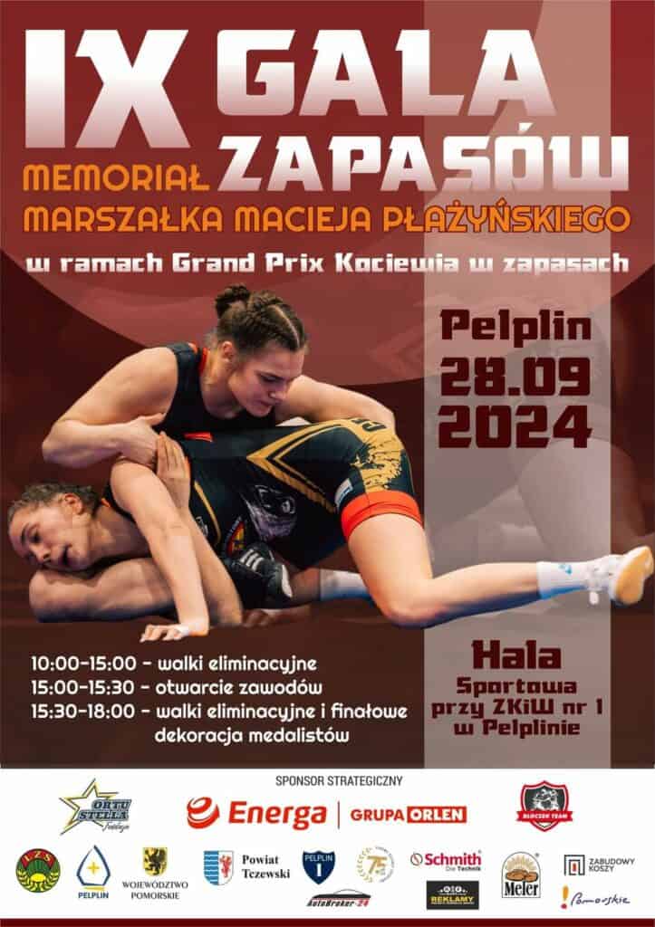 Zapraszamy na IX Galę zapasów. Memoriał Marszałka Macieja Płażyńskiego w Pelplinie. 27-28.09.2024