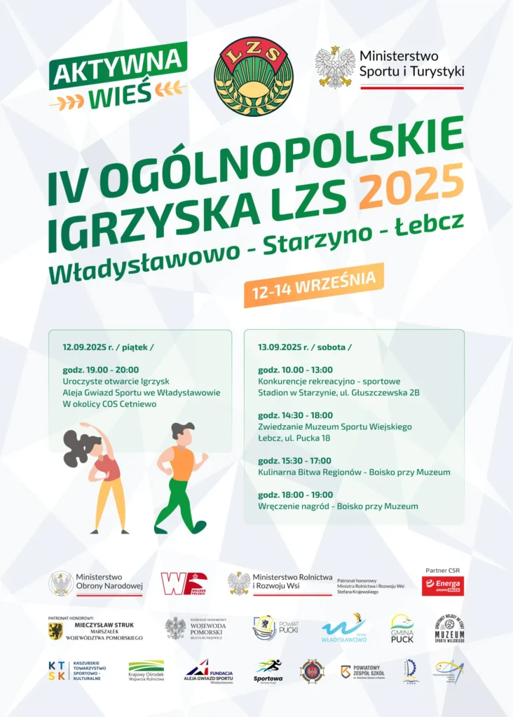 Przed nami wielkie święto sportu wiejskiego. W dniach 12-14.09.2025 na terenie powiatu puckiego, odbędą się IV Ogólnopolskie Igrzyska LZS – Aktywna Wieś . Władysławowo,Starzyno, Łebcz. Otwarcie imprezy zaplanowane jest na piątek we Władysławowie na Alei Gwiazd. W sobotę rywalizacja w sportach ludowych odbędzie się w Starzynie , po południu impreza przenosi się do Łebcza, gdzie […]