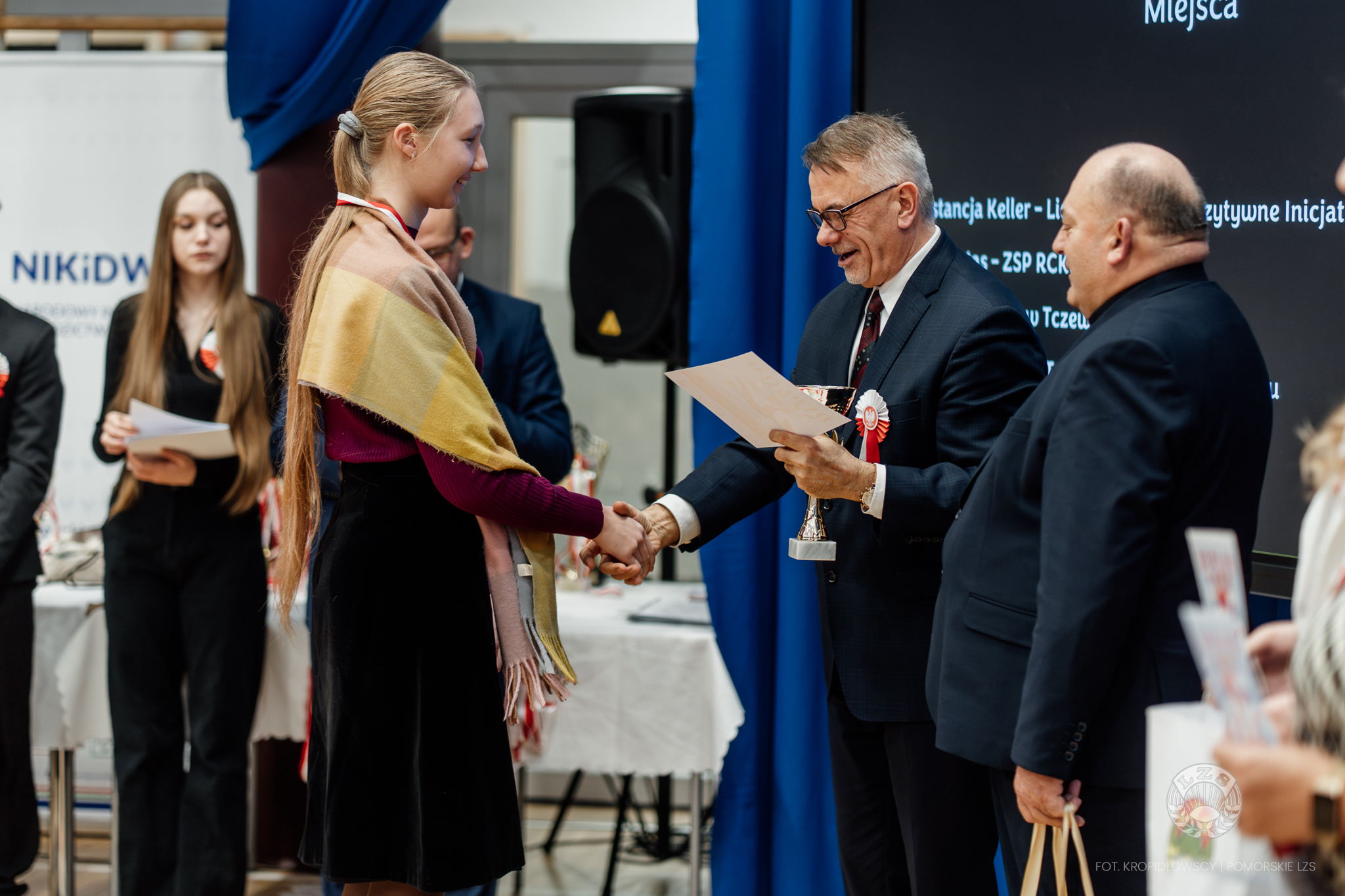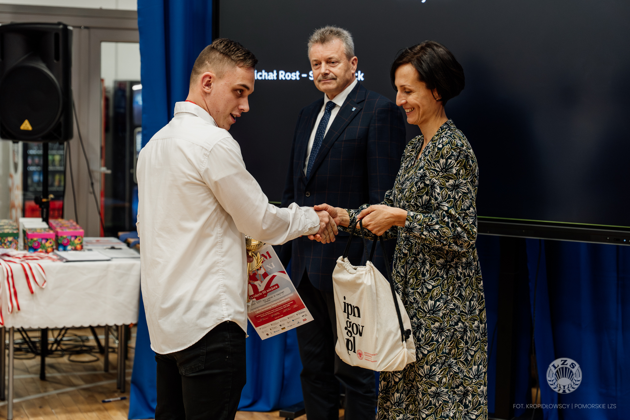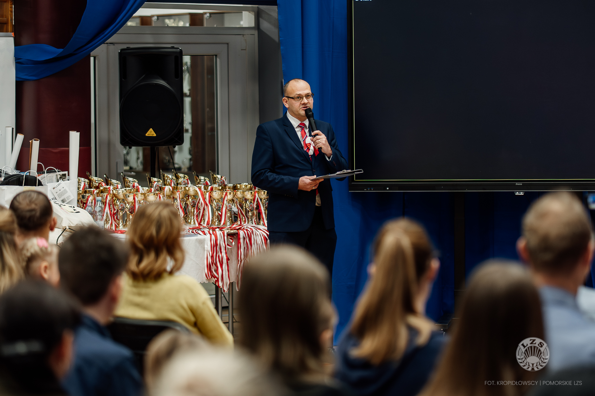 Po zakończeniu dekoracji pan dyr. Pałucki wręczył podziękowania, róże i drobne upominki członkiniom komisji konkursowej a także przybyłym gościom. Należy dodać, że upominki i nagrody dla laureatów konkursów przekazali: Kancelaria Prezydenta RP Karola Nawrockiego, Ministerstwo Rodziny, Pracy i Polityki Społecznej, Ministerstwo Rolnictwa i Rozwoju Wsi, Samorząd Województwa Pomorskiego, Pomorskie Zrzeszenie LZS w Gdańsku, Starostwo Powiatowe w Pucku, Zygmunt Labuda RTV AGD z Luzina, Pomorski Związek Piłki Nożnej
