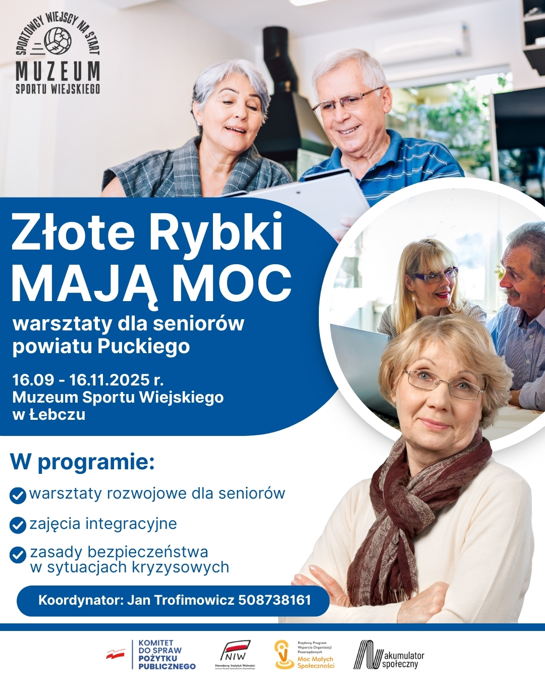 W Muzeum Sportu Wiejskiego w Łebczu wystartował projekt dla seniorów z powiatu puckiego, który potrwa do 16 listopada. Przed nami mnóstwo wartościowych spotkań – rozwój, integracja i wiedza o bezpieczeństwie w jednym!